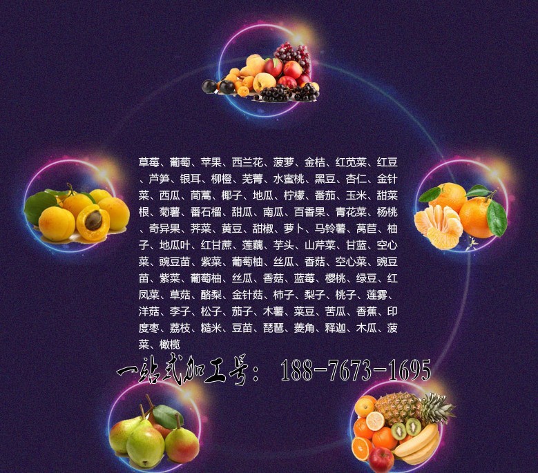 其他加工产品生产线:酵素加工、小规格玻璃瓶果蔬汁饮料加工、50ml混合果汁饮料加工、胶原蛋白复合果汁饮料加工、沙棘果汁饮料加工、各类果味饮料加工、玛咖饮料OEM加工厂、多种蔬果、植物饮料代加工 提供30/50毫升玻璃瓶装、蓝莓饮料、玛咖饮料、人参饮料、酵素饮料、胶原蛋白饮料、各类植物果蔬饮料OEM代加工,欢迎到厂考察!