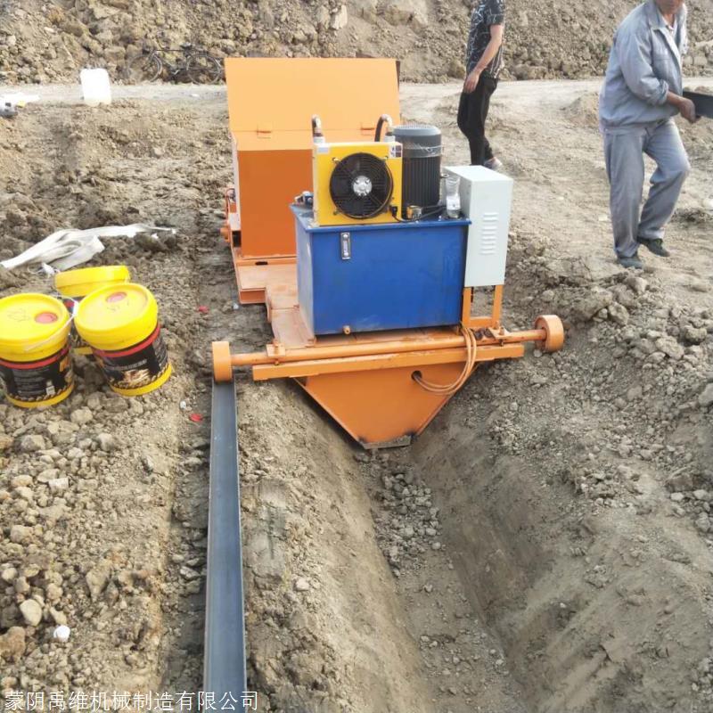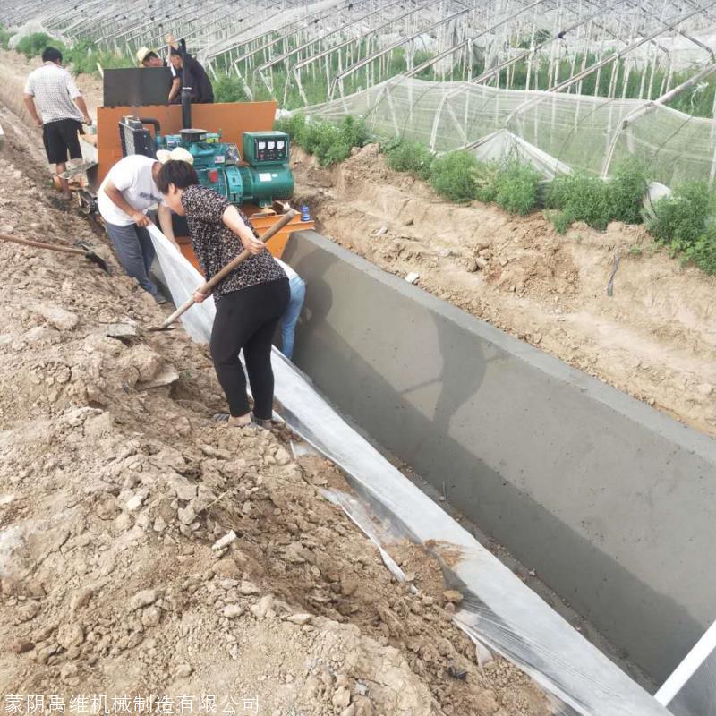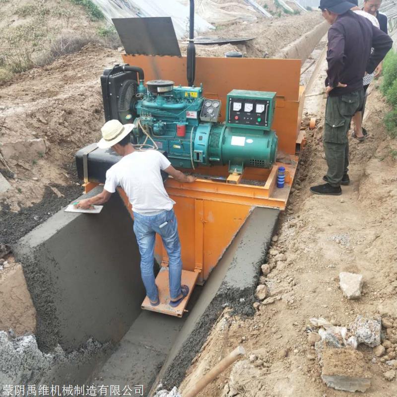 水渠成型机是一款修边沟的机器,机器在施工现场将混凝土成型为要求事先确定好的混凝土边沟的尺寸,误差小于5mm。