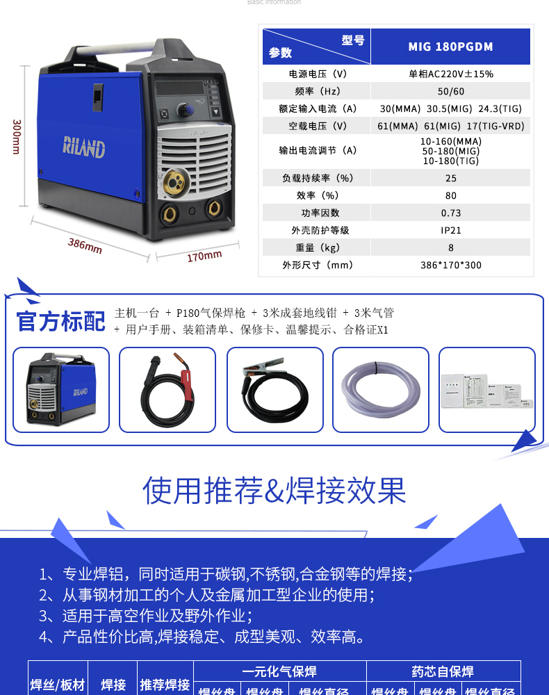 - 3C规格型号:MIG 180GDMⅡ(1~220V, MIG:180A,X=25/%;TIG:180A,X=25/...