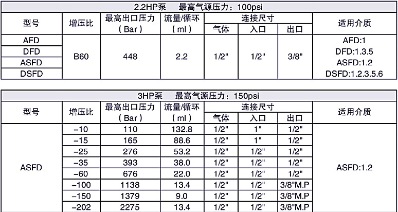 • Haskel气动液体增压泵由气体驱动部分、液压部分和换向控制阀三个部分组成。气体驱动部分的活塞和液压部分的柱塞连在一起,由换向阀控制自动做往复运动。通过大面积的活塞和小面积的柱塞,将作用在活塞上的驱动气体的压强传递给柱塞,从而提高液体的出口压力。以普通压缩空气或其他气体作为动力;