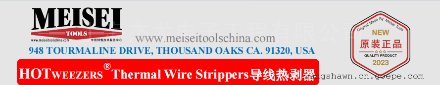 美国MEISEI公司为国际上致力于研发与生产精密导线热剥器的公司,四十五年来MEISEI公司以其高质量、高性能的产品和独特的高可靠 精密高温发热芯气密性金属封装技术,获得多项专利技术应用和注册商标,其4A/4B/4C/2A通用型热剥镊子钳和7A/7B/7C/3A防静电型热剥镊 子钳,具有超高温度、精密线径、轻巧外形、无锋利快口、不伤芯线、操作简便等特性,配合M-10、M-20可调温度超低压安全电源,满足 全球范围内的航空、航天、电子、通信等军工电子领域的高可靠导线无损伤剥头要求。 MEISEI公司通过一套严格的质量检验程序,对产品质量进行全面的控制和测试,提供高可靠精密热剥工具系列,在国际军工电子线缆装配领 域占有90%以上的市场份额。美国MEISEI公司导线热剥器系列产品经过中国代理商及各地分销商二十多年的中国市场推广、销售和服务,已 向国内航空、航天、电子等军工研究所、工厂销售超30000台以上通用型导线热剥器和防静电型导线热剥器,占有95%以上的市场份额,有 效保障军工导线剥头生产安全,并得到广大军工电子用户的认可和好评。