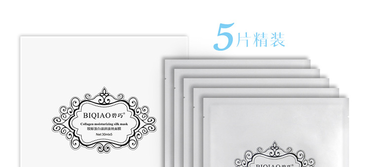 碧巧胶原蛋白滋润保湿蚕丝面膜贴批发代理提升紧致细致毛孔5片/盒