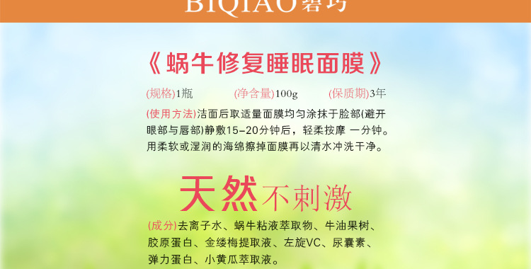 碧巧面部美容护肤品蜗牛睡眠免洗面膜100g保湿补水祛痘去痘印面膜