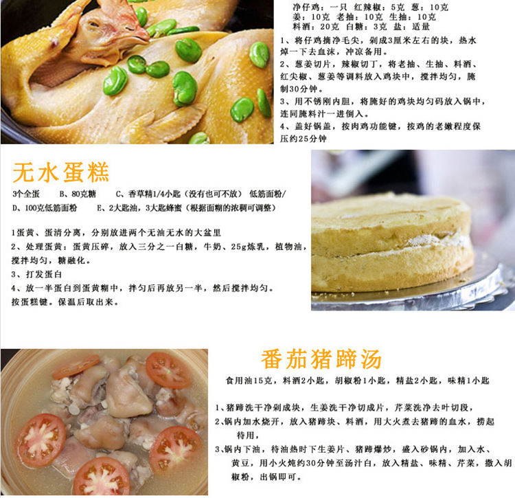 3、无水炖鸡,原汁原味,加热、保压、保温独立控制。